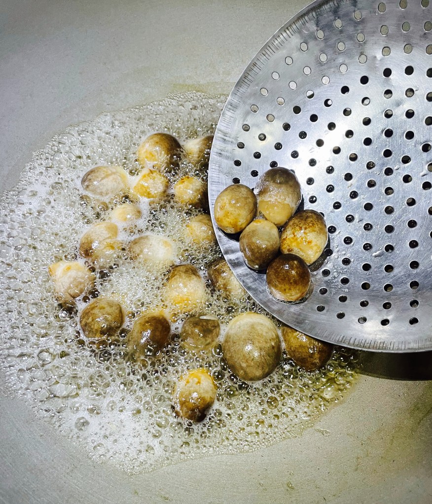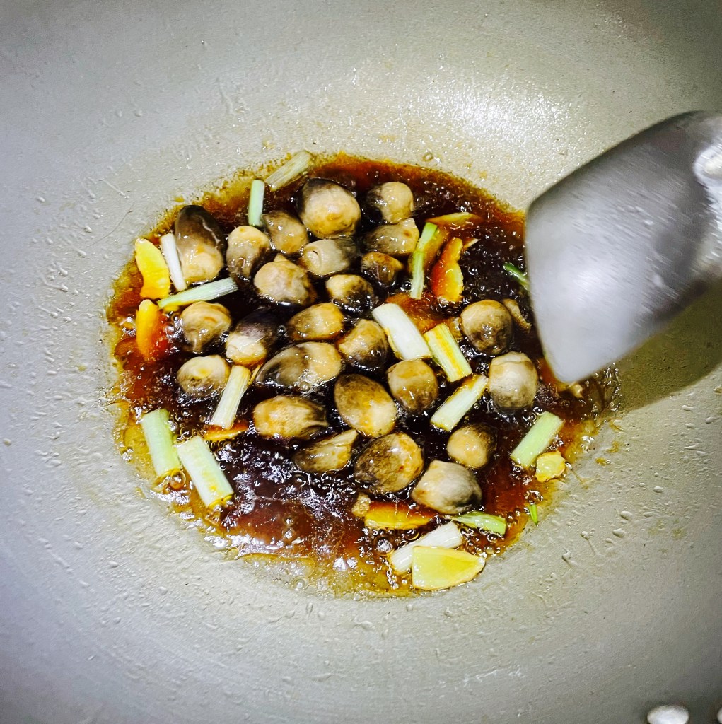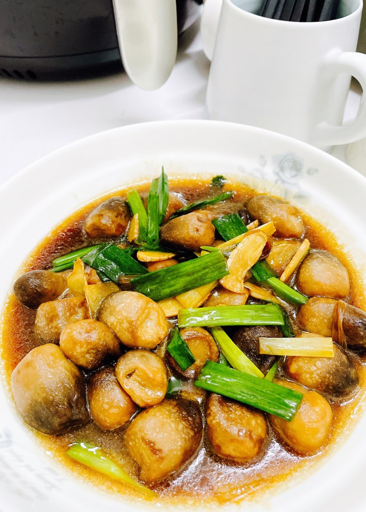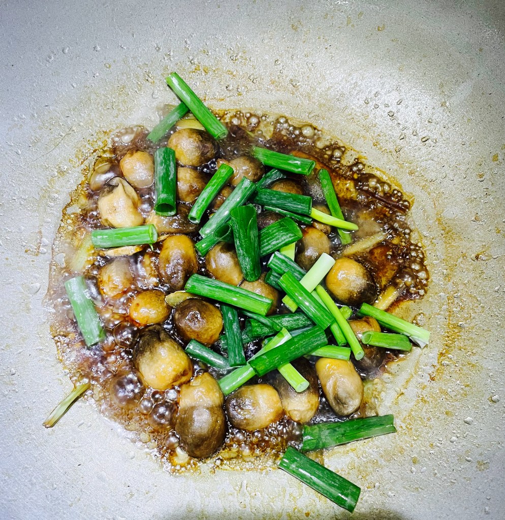 My mom bought some fresh straw mushrooms at a traditional market, we fried them together with spring onion, ginger and oyster sauce. The result was a delicious dish. Let’s try this straw mushroom dish together!