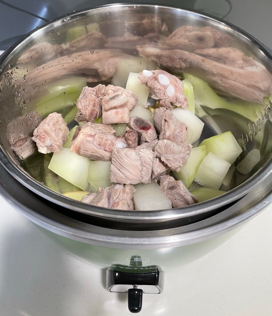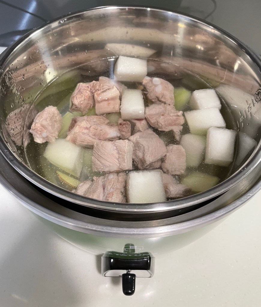 *注意事項:排骨要先川燙除去大部分的雜質,讓冬瓜排骨湯可以清澈美味。如果要讓排骨更入口即化,可以等電鍋跳起後,外鍋再放兩杯水再加熱一次唷!