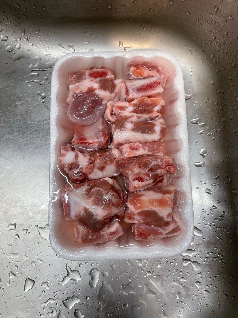1.先將買回來的排骨用水清洗表層,瀝乾後備用。